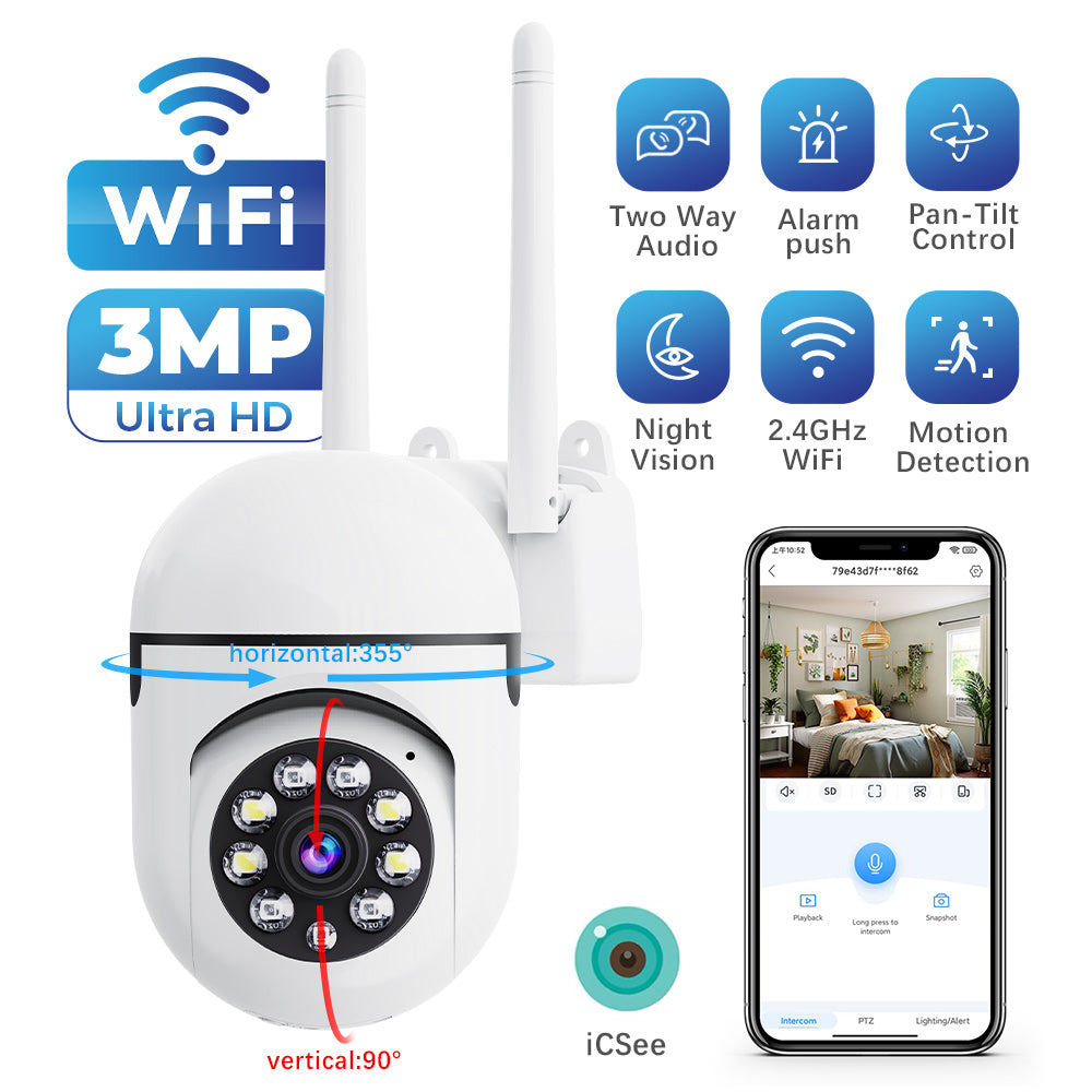 3MP WiFi Camera Indoor 360 Degree Pan/Tilt Surveillance Cameras Pet Baby Monitor Color Night Vision Motion Detection