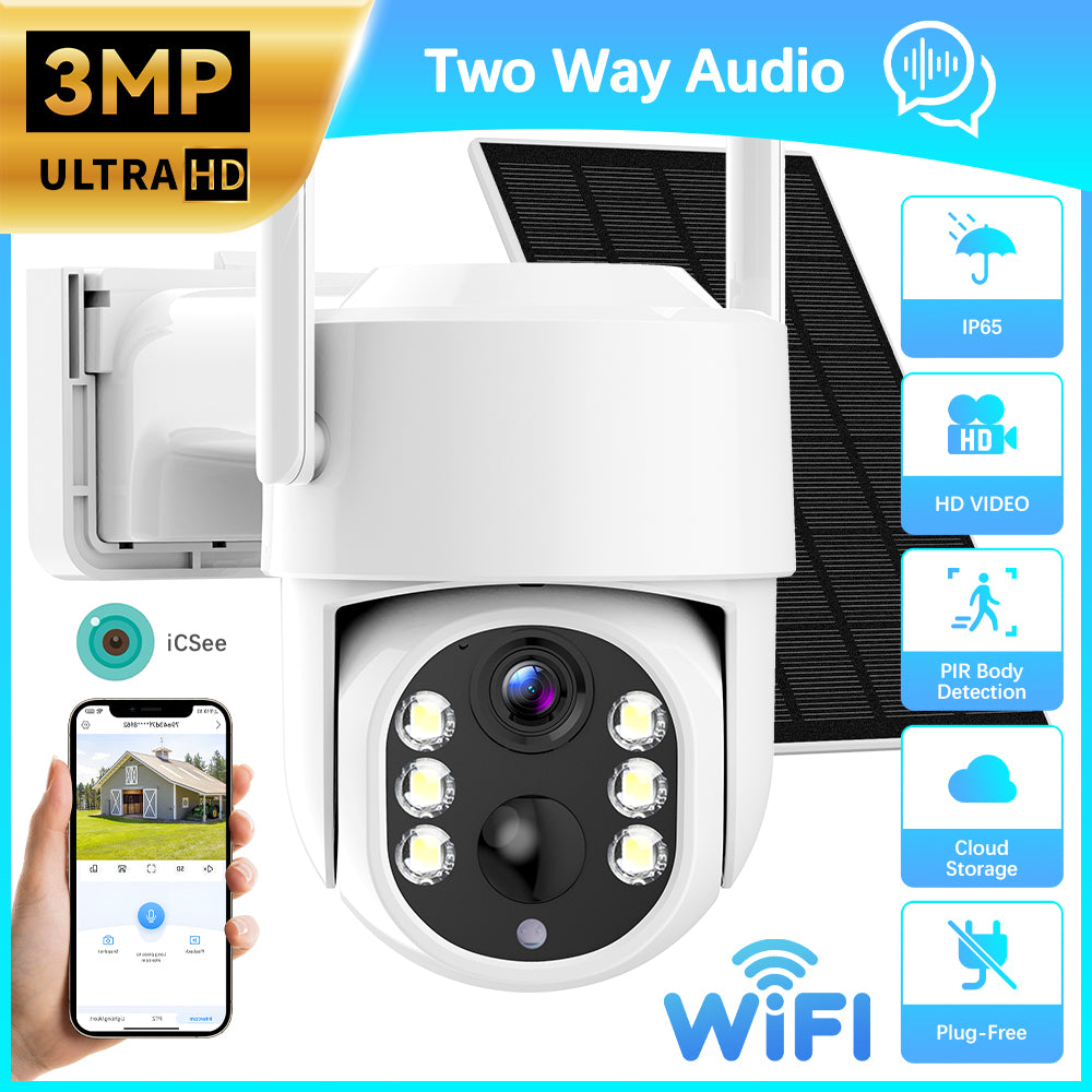 XVIM 2.5K HD Solar Powered WiFi Sceurity Camera Outdoor with Battery IP66 Waterproof PIR Motion Deteetion Infrared Night Vision